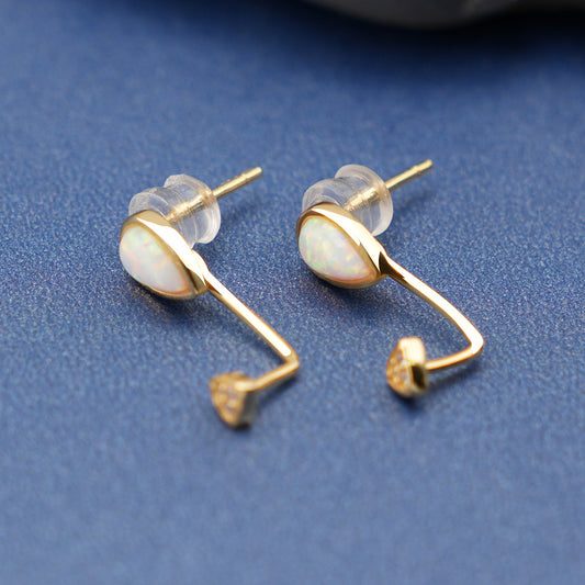 Pear Opal Drop Earrings 925 Sterling Silver Gold, White Fire Opal Dainty Stud Earrings, October Birthstone Gift for Her, Bridal Jewelry