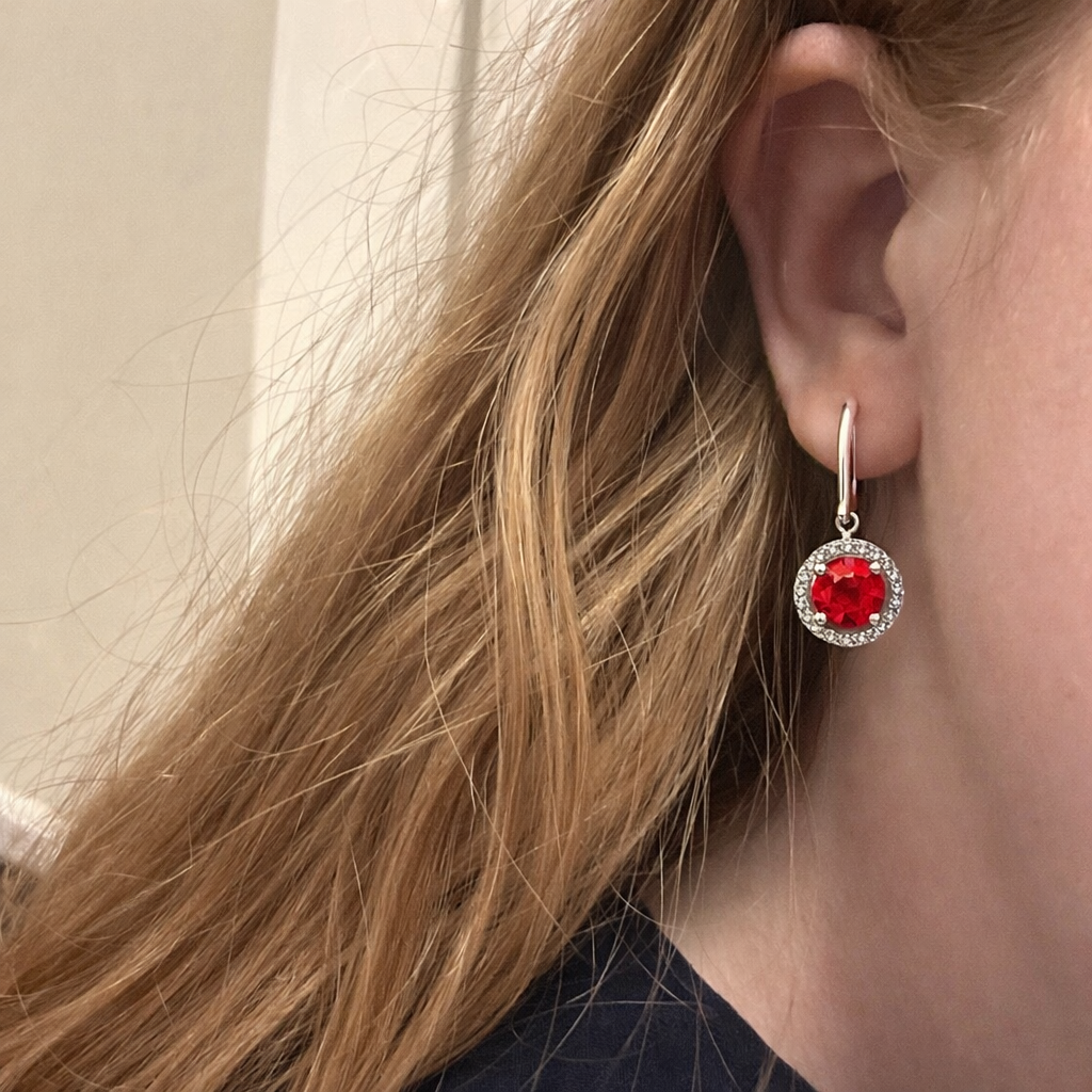 925 Sterling Silver Huggie Hoop Earrings with Round Stone