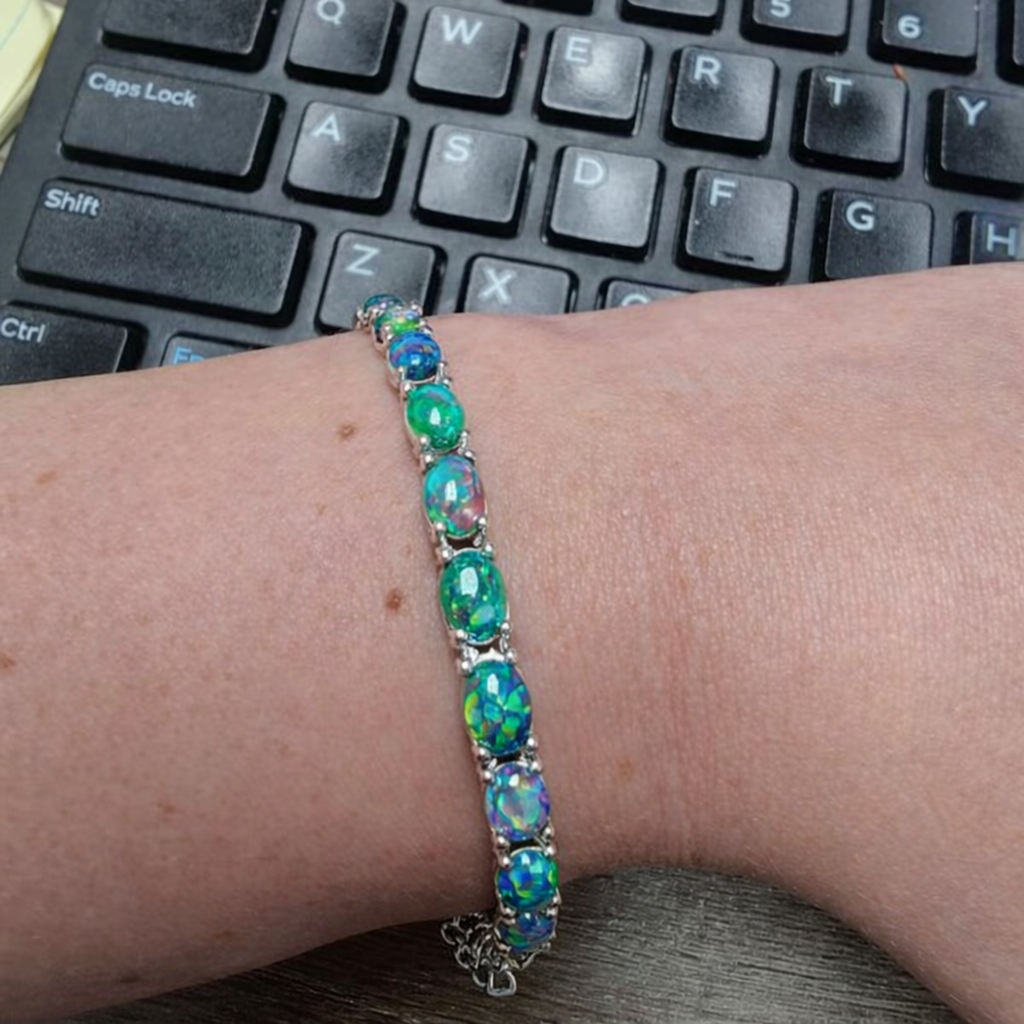 Natural Opal Tennis Bracelet 925 Sterling Silver - 4Γ6mm Oval Opal Bracelet