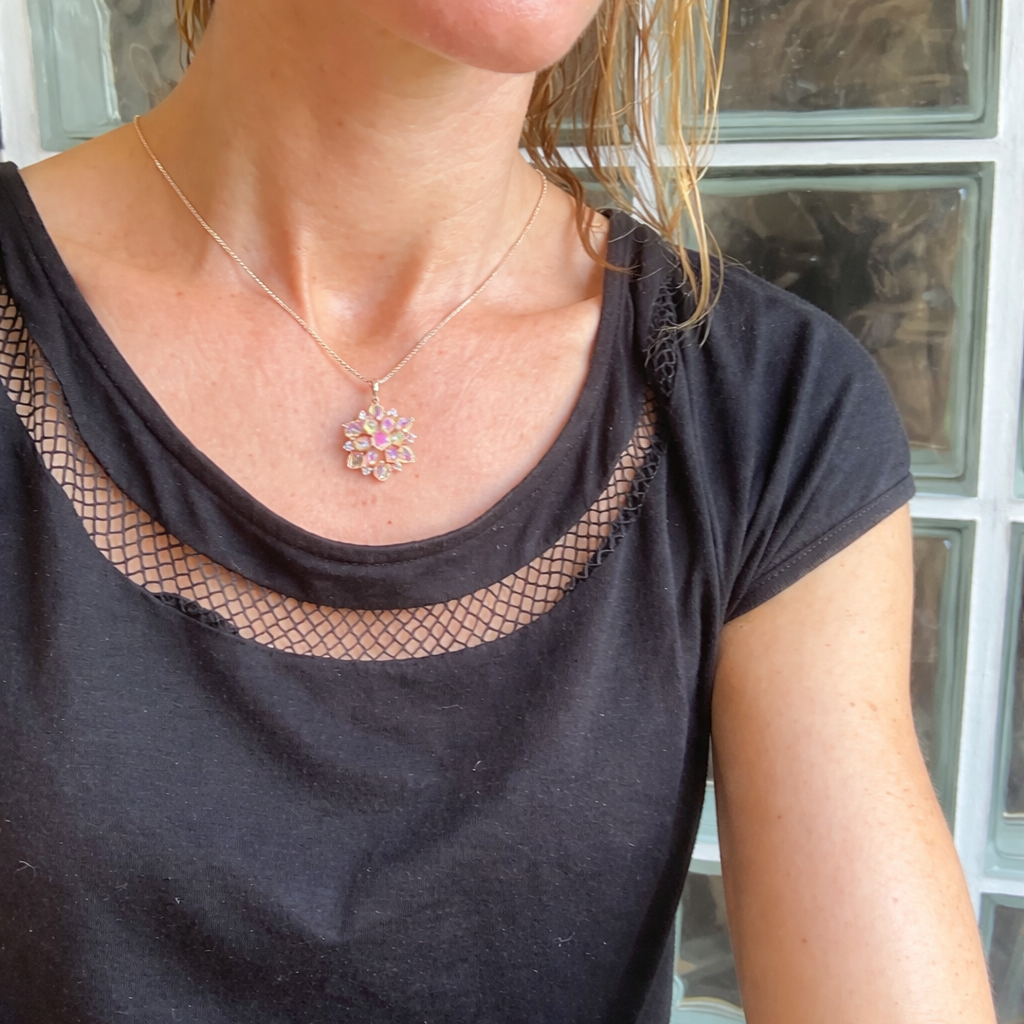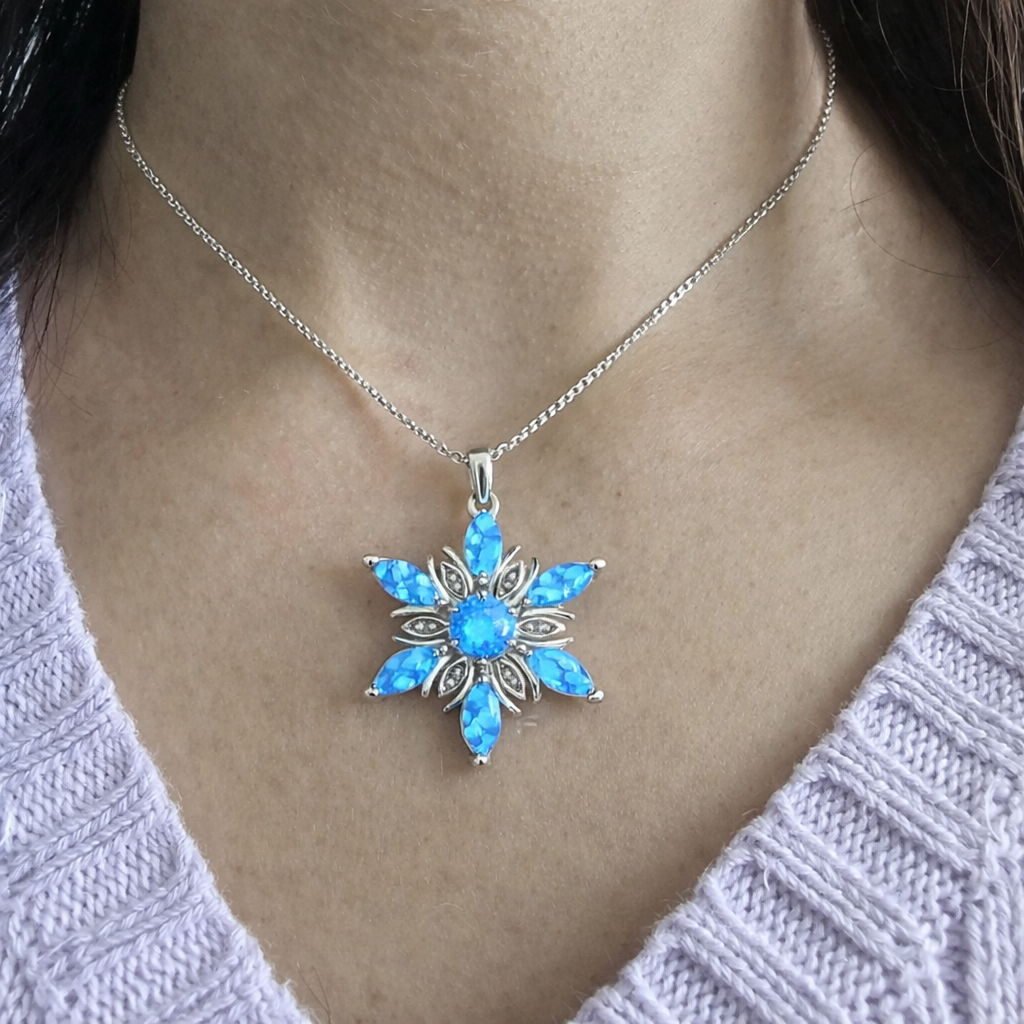 Peace Flower Opal Necklace Pendant, Sterling Silver Nature Inspired Pendant, Gift for Her Mom Wife