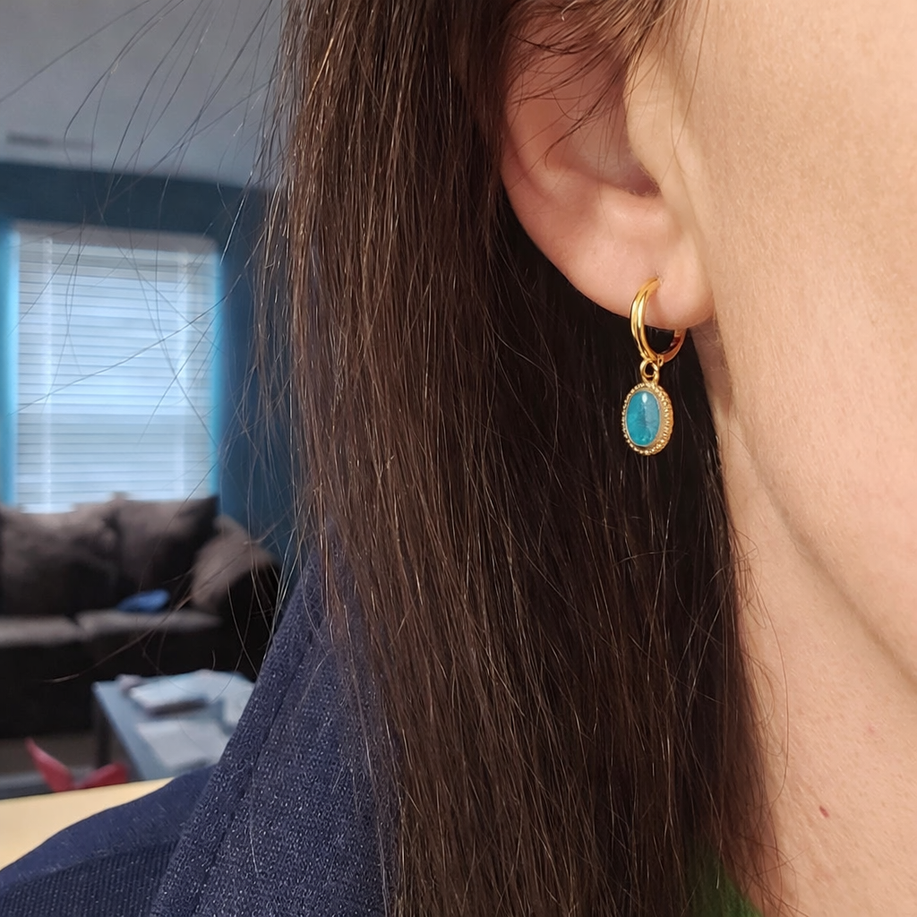 Sterling Silver Green Stone Huggie Hoop Earrings