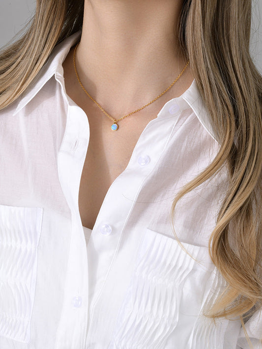 Vintage Round Opal Necklace Sterling Silver Gold Pendant, October Birthstone Gift for Her, Bridal Opal Jewelry, Anniversary Birthday Gift