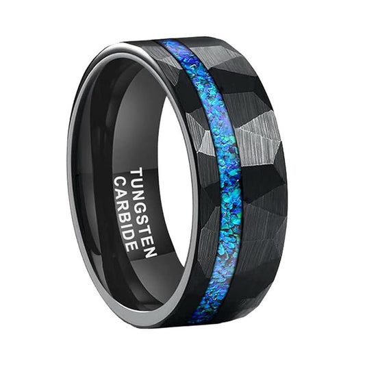 Opal Tungsten Ring 8mm | Blue Opal Inlay Wedding Band | Black Tungsten Ring