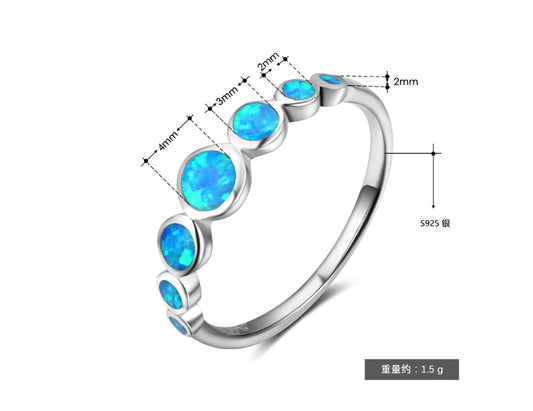 Opal Inlay Silver Band Ring | White & Blue Opal Ring | Opal Wedding Band Gift for Her