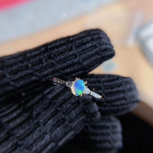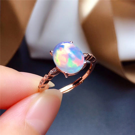 Natural Opal Ring 925 Silver | Oval Opal Gemstone Ring | Opal Gift for Her